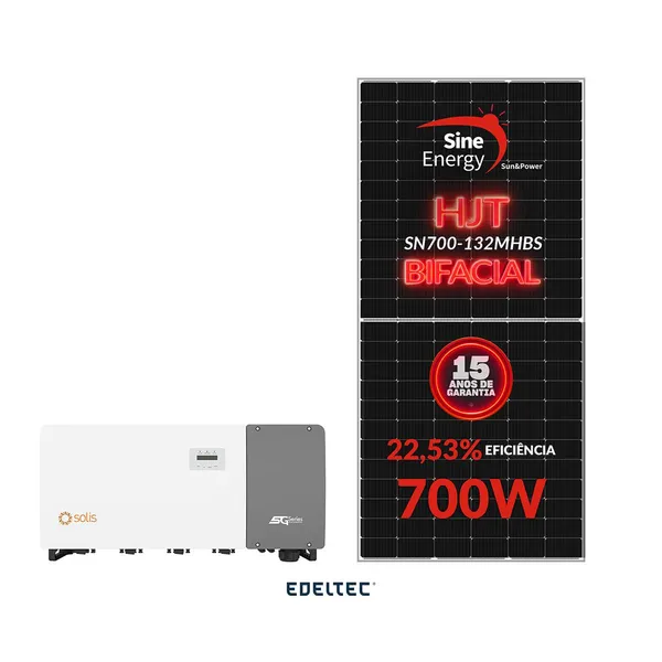 Gerador edeltec solar solis 161,00 kwp tri. 380v fibrometal (110k/700w bifacial)