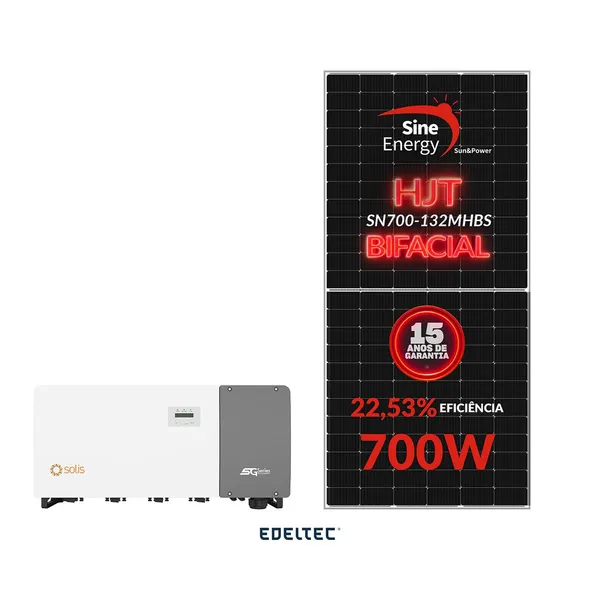 Gerador edeltec solar solis 67,20 kwp tri. 220v solo (50k/700w bifacial)