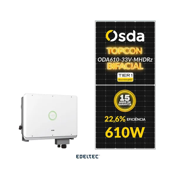 Gerador edeltec solar saj 53,68 kwp tri. 380v fibrometal (40k/610w bifacial)