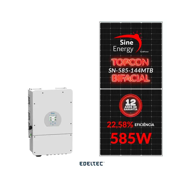 Gerador edeltec solar hibrido deye 8,19 kwp mon. 220v s/estrutura (8k/585w bifacial)