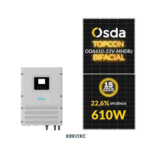 Gerador edeltec solar hibrido off grid deye 2,44 kwp mon. 220v laje (3.6k/610w bifacial)