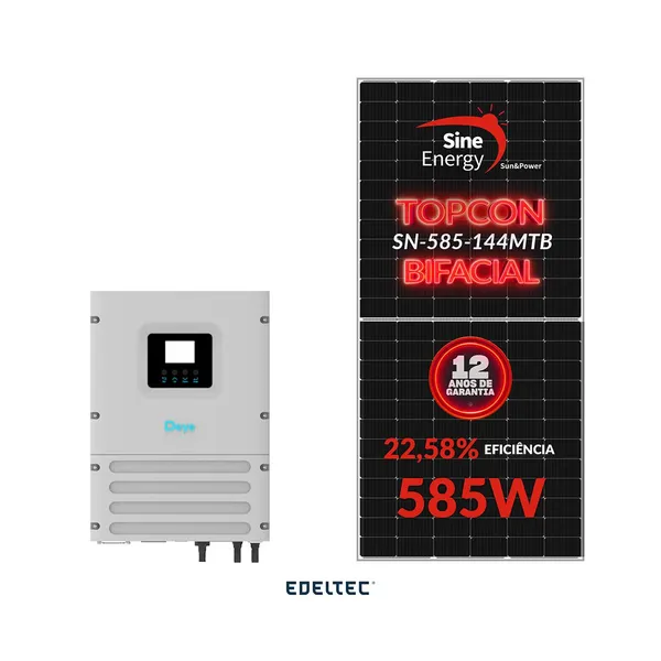 Gerador edeltec solar hibrido off grid deye 2,34 kwp mon. 220v solo (3.6k/585w bifacial)