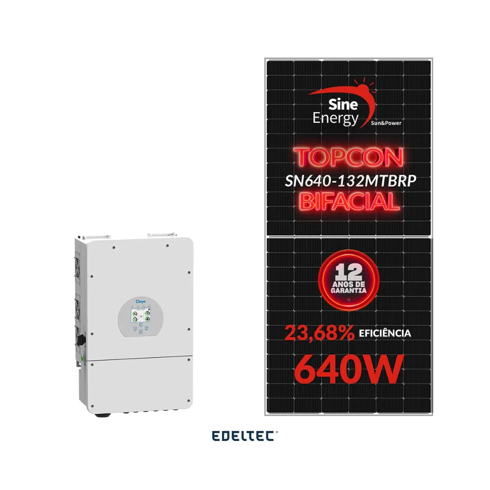 Gerador edeltec solar hibrido deye 5,12 kwp mon. 220v metalico (5k/640w bifacial)